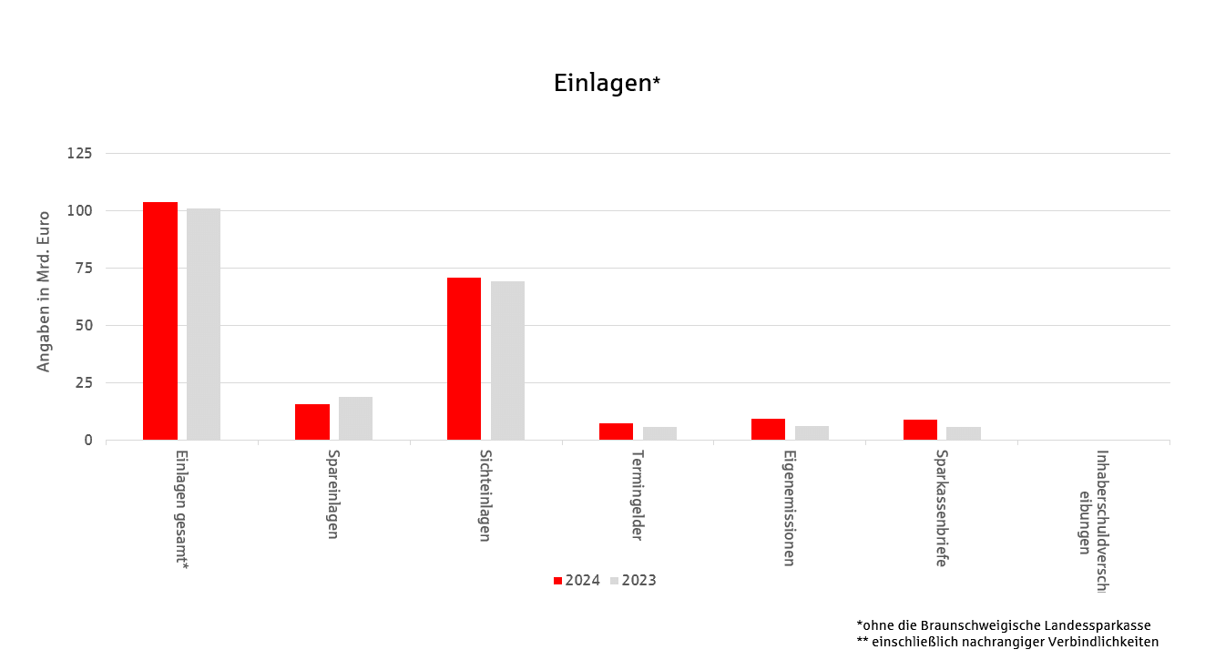 Einlagen gesamt (einschließlich nachrangiger Verbindlichkeiten) | 104,1 | 101,1 | +3,0 |